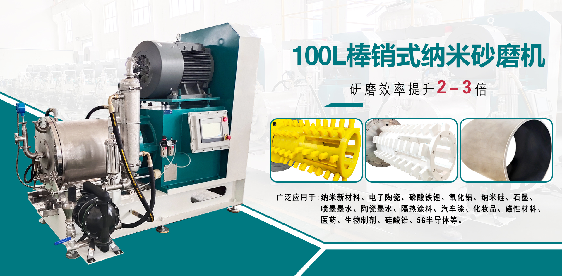 工業(yè)級棒銷動態(tài)砂磨機廣泛應用于微米級亞微米級、納米級的中高粘度物料的研磨,動靜環(huán)間隙出料,棒銷轉(zhuǎn)子結(jié)構(gòu)滿足不同尺寸、不同研磨細度以及不同研磨工藝的生產(chǎn)需求 臥式砂磨機,適用于對研磨精度要求高的化工物料,連續(xù)封閉式高效率濕式研磨分散。 輸送泵有氣動隔膜泵和圓弧泵、刮板泵研磨介質(zhì)為氧化錯珠,根據(jù)物料及細度要求選擇介質(zhì)大小